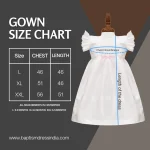 💡 If standard sizing doesn’t fit, you may provide your baby’s body measurements. Our skilled team will tailor the gown, adding the required allowance to ensure the perfect fit.