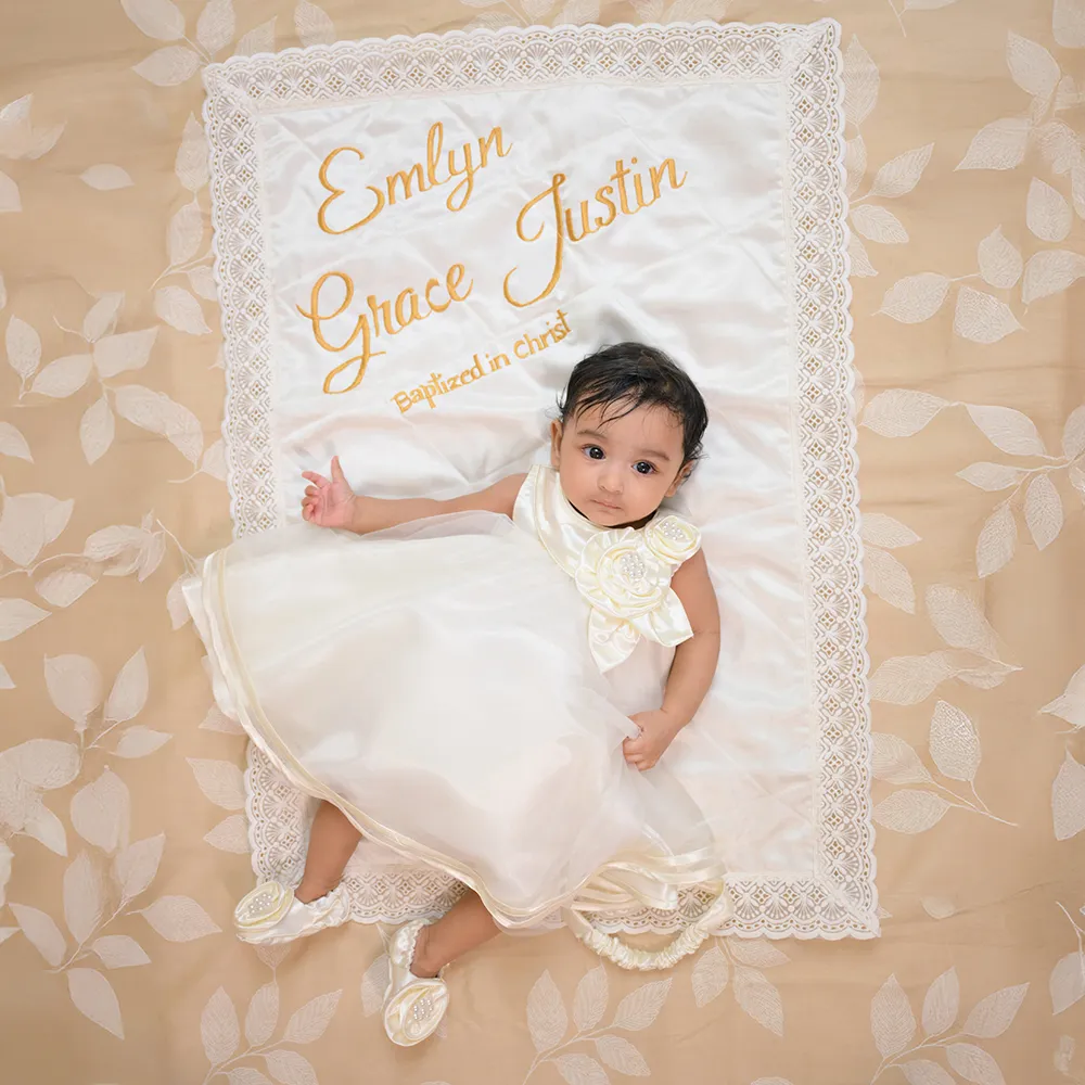 Celebrate your baby’s baptism with the Amara Rose Baptism Dress, a gown that symbolizes eternal grace and blossoms with blessings. Handcrafted in premium satin and delicate net, this gown is designed to reflect purity, tradition, and timeless elegance.