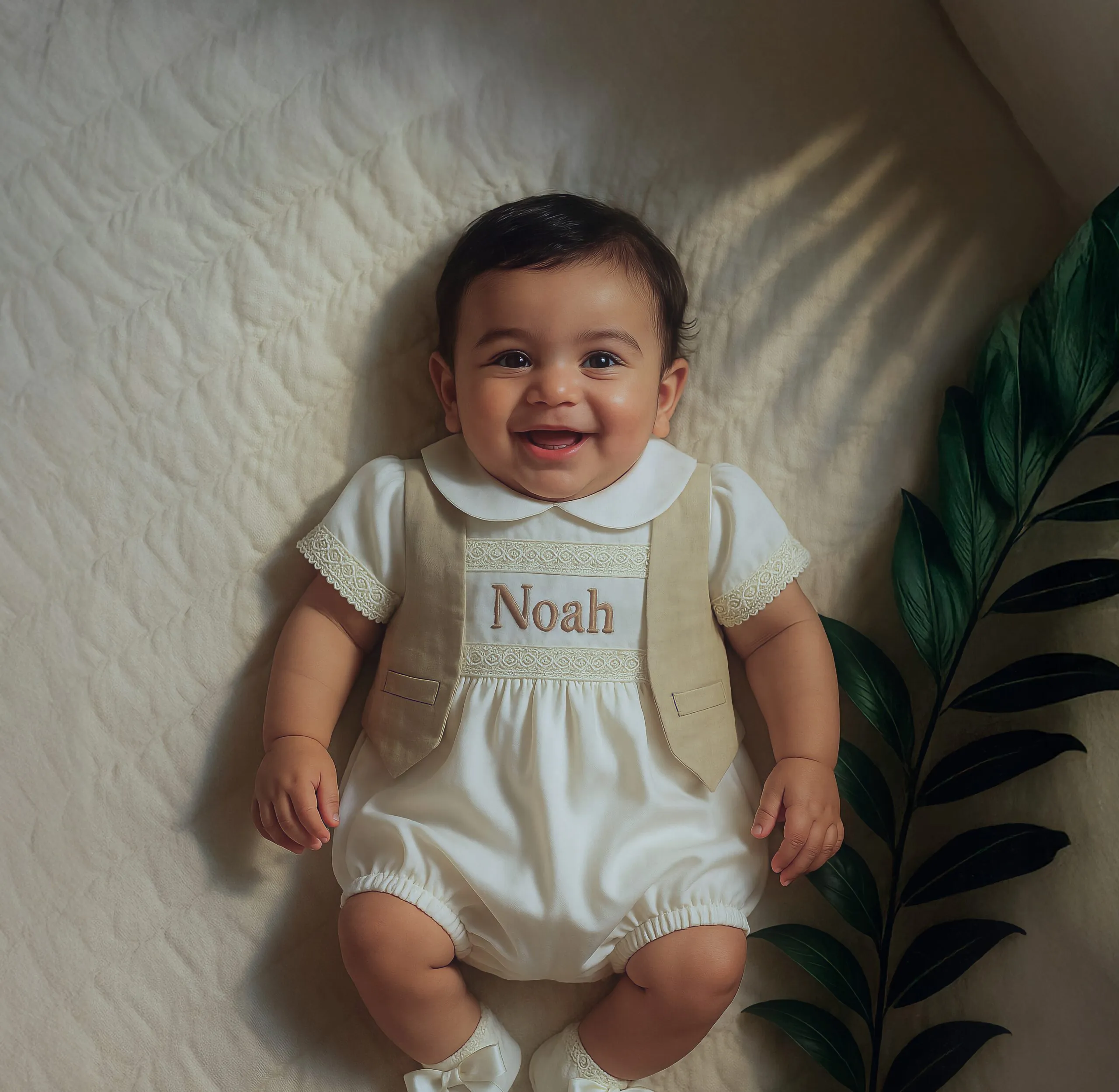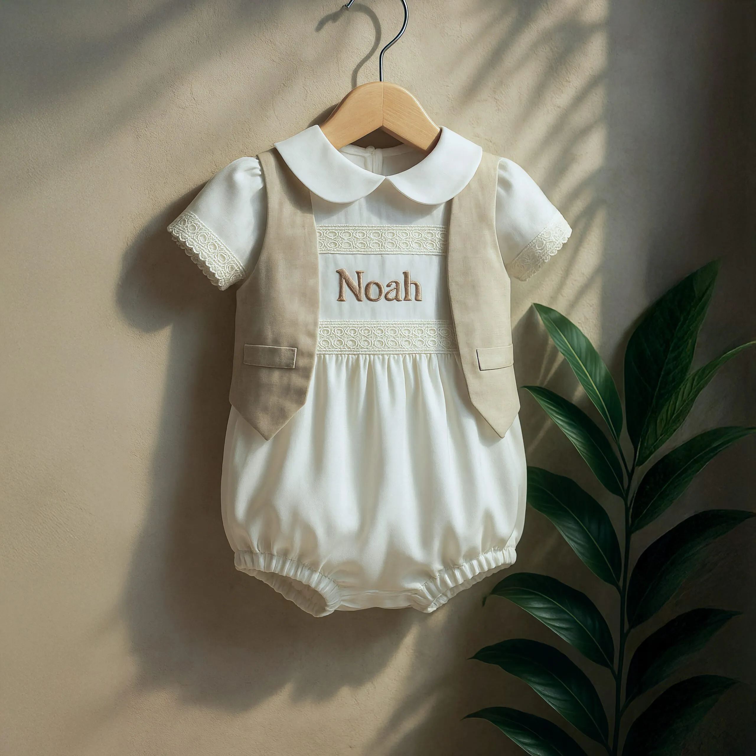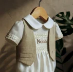 Asher Baptism Set – Linen Romper with Detachable Overcoat