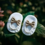 The outfit features lace-trimmed sleeves, elasticized leg openings, and personalization with your baby’s name — making it a timeless keepsake for such a blessed occasion.